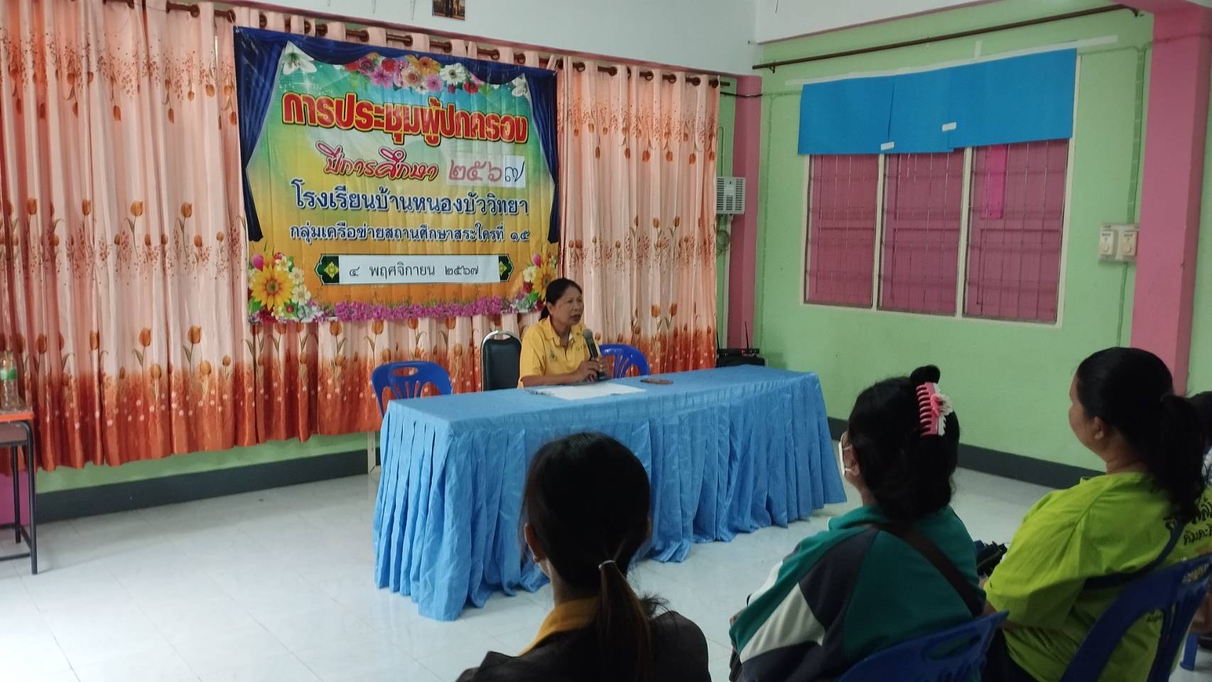 นางอาทร ลือหาญ ครูรักษาการในตำแหน่งผู้อำนวยการโรงเรียน พร้อมคณะครูและบุคลากรทางการศึกษาได้ประชุมผู้ปกครองนักเรียน ภาคเรียนที่ 2/2567 ในวันที่ 4 พฤศจิกายน 2567 เพื่อเตรียมความพร้อมในการเรียนการสอนในภาคเรียนที่ 2/2567