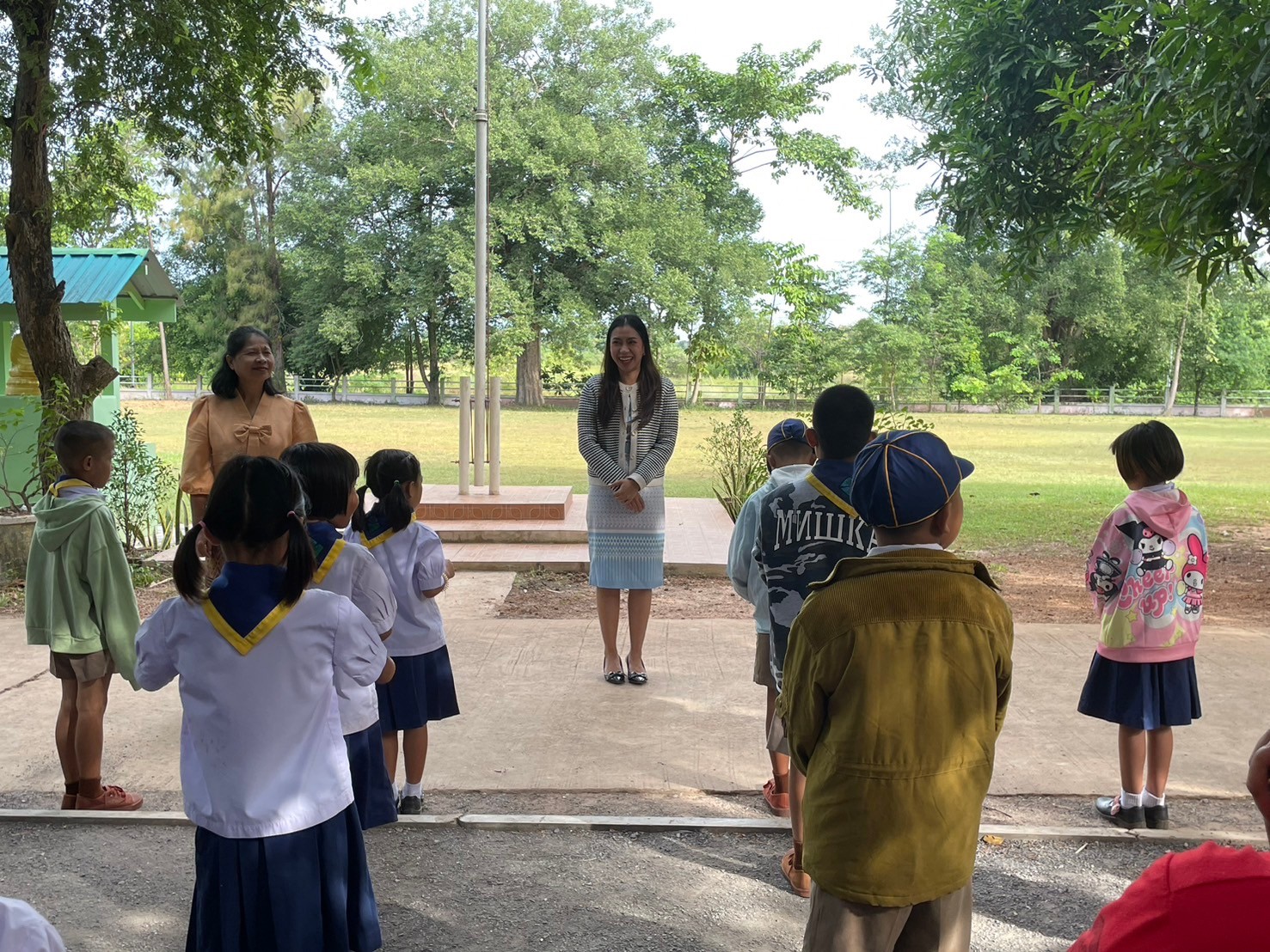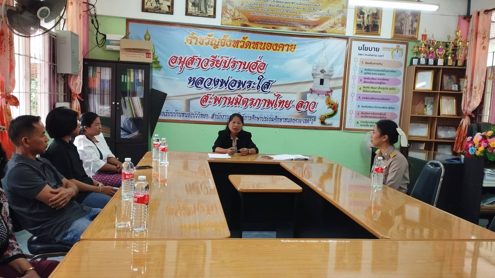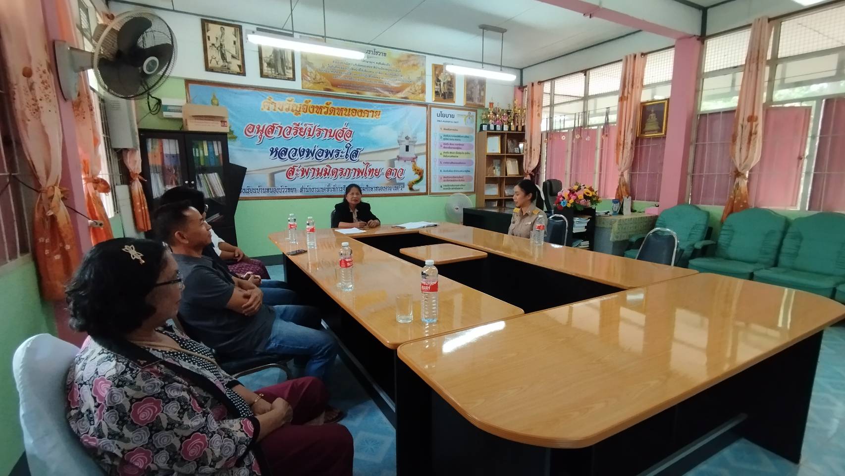 นางอาทร ลือหาญ ครูรักษาการในตำแหน่งผู้อำนวยการโรงเรียน พร้อมคณะครูและบุคลากรทางการศึกษาได้ต้อนรับ