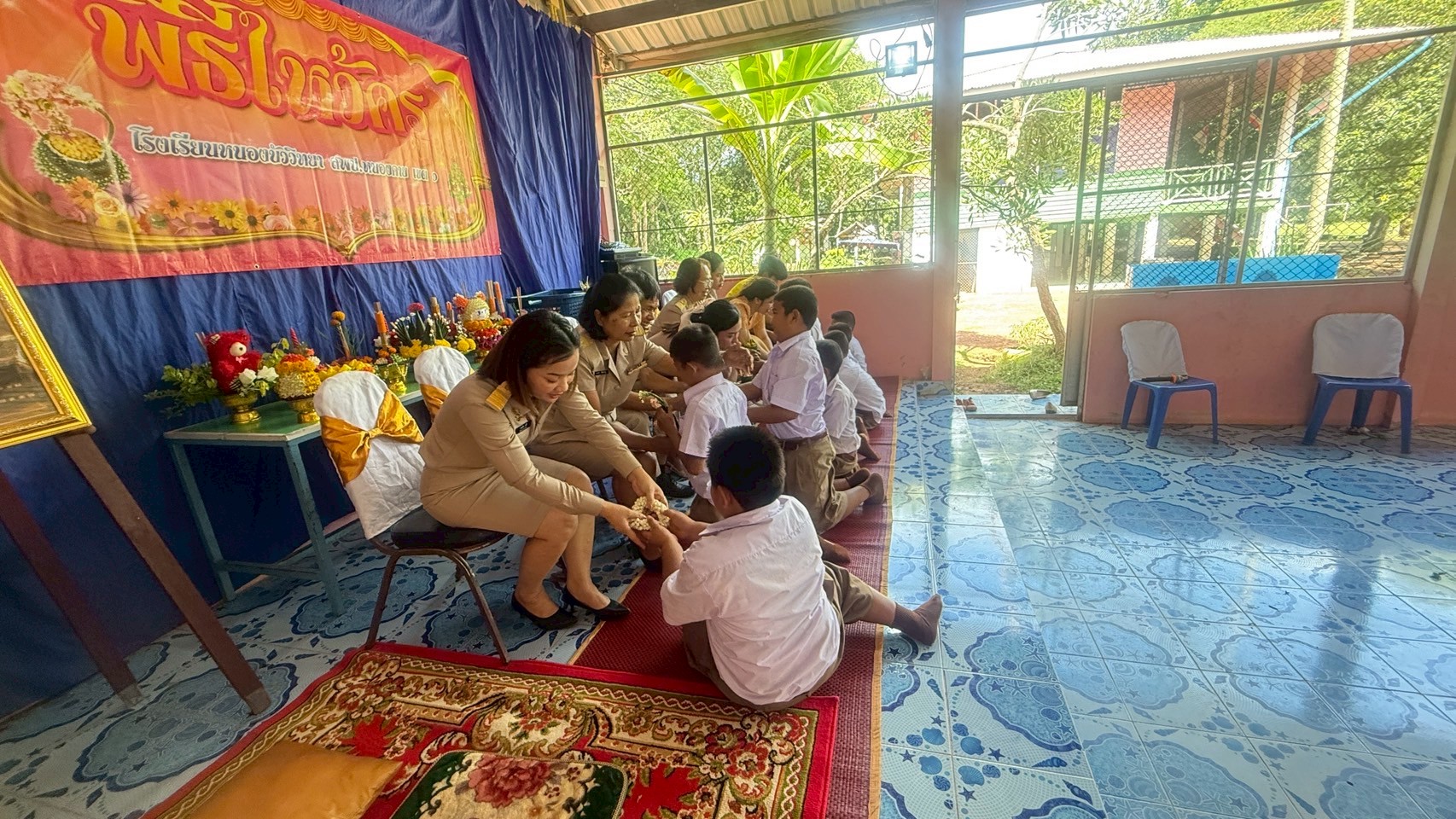 วันศุกร์ที่ 12 มิถุนายน ๒๕๖๘ นางเจนจีรา ลาดี ผู้อำนวยการโรงเรียนบ้านหนองบัววิทยา ร่วมกับ คณะข้าราชการครูและบุคลากรทางการศึกษาพร้อมด้วยนักเรียน ได้จัดกิจกรรมพิธีไหว้ครูเพื่อรำลึกถึงคุณครูบาอาจารย์ที่ได้อบรมสั่งสอนเรามา